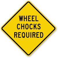 "Mirror Image" signs (with reversed text) are available and highly effective. They allow drivers looking in their rear-view mirrors to read the "Chock Wheels" message correctly without having to turn around, increasing the likelihood of compliance.