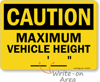 Measure the lowest point and subtract a 3–6 inch safety margin. For custom measurements, use our clearance signs tool to print your specific height.