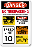 By posting no trespassing and warning of hazards, these signs serve as a legal notice. They help limit the property owner's and contractor's liability if an unauthorized person enters the site and gets injured.