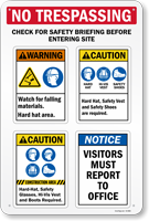 Key messages almost always include no trespassing, all visitors must report to office, and a list of required ppe, such as hard hats, safety vests, and safety glasses must be worn on this site. these requirements ensure a safe construction zone.