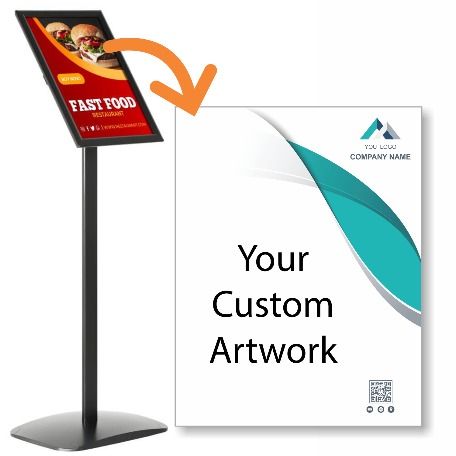 - Sleek freestanding aluminum sign post offers a premium eye-level presentation.