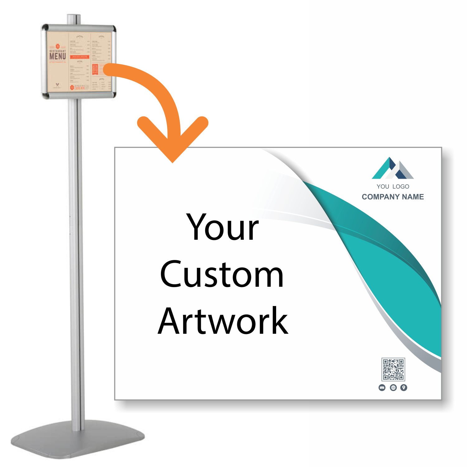 Prioritize safety and style with this Decorative Round Corner Menu Board Kit. This all-in-one solution includes a custom-printed insert and a pedestal stand featuring soft, rounded corners—ideal for schools, hospitals, or busy hospitality venues.