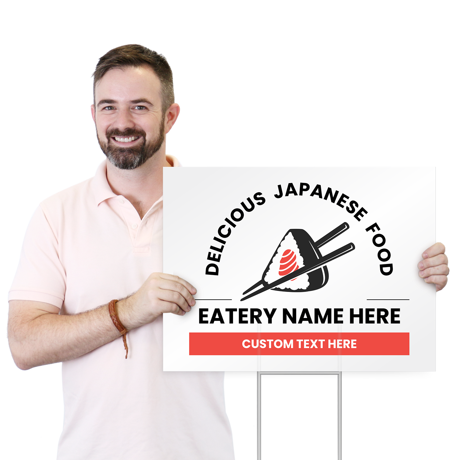 Restaurant Custom Yard Sign: Delicious Japanese Food - Add Your Name And Text (With Chopsticks Symbol) K3-3008-H