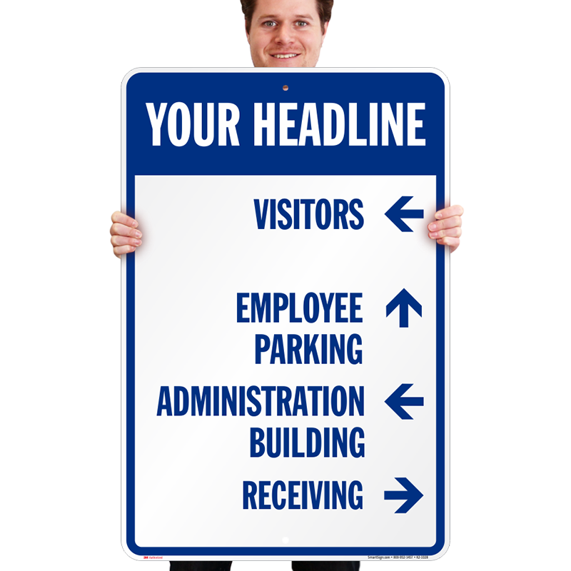 Customize your 36 inches x 24 inches parking lot directory sign with our user-friendly tool. Click on the directional arrows to choose one for each section.