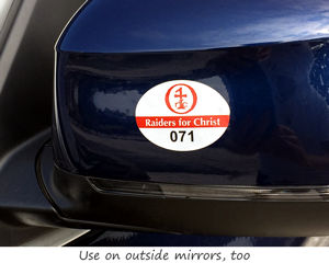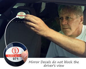 Mirror parking decals are right-sized for mirrors - and are proven to be car-tough! Too many decal competitors use shapes that are just too big. Mirror parking decals need to fit (and not fold over the front of the mirror) and they need to be conspicuous.