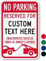 Many of our most popular templates, like the customizable reserved parking violators towed sign, allow you to do just this. Explicitly stating the consequence for unauthorized parking, such as on a standard reserved unauthorized vehicles towed sign, is highly effective at deterring violations and improving parking compliance on private property. Our reserved parking sign features video showcases various message combinations.