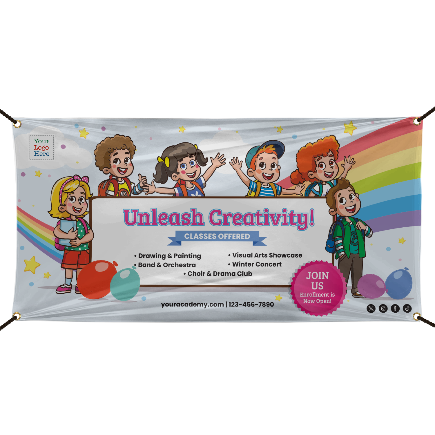 Custom Vinyl Banner: Early Education School Enrollment - Add Your Logo B-3089 Learn More...