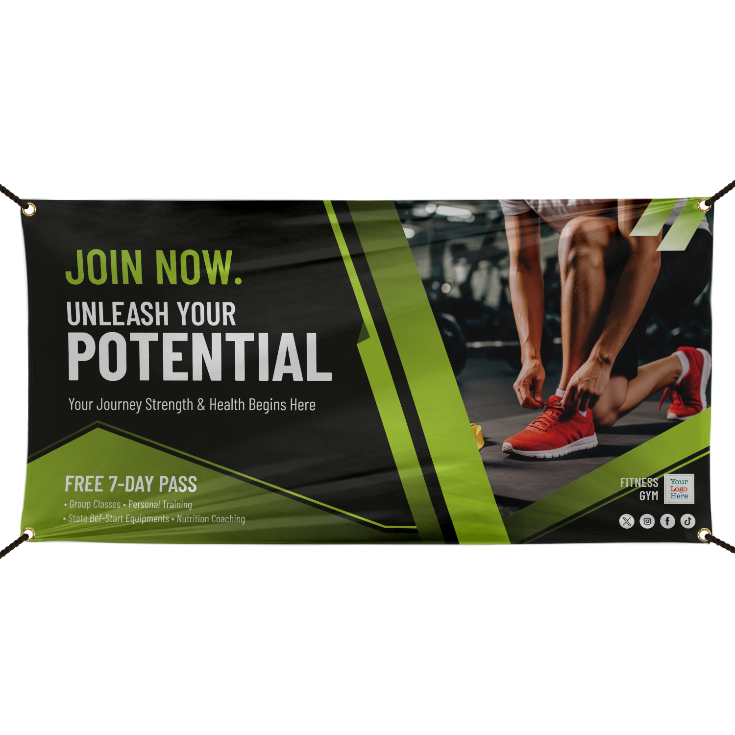 Custom Vinyl Banner: Gym Fitness Join Today - Add Your Text and Logo B-3115 Learn More...