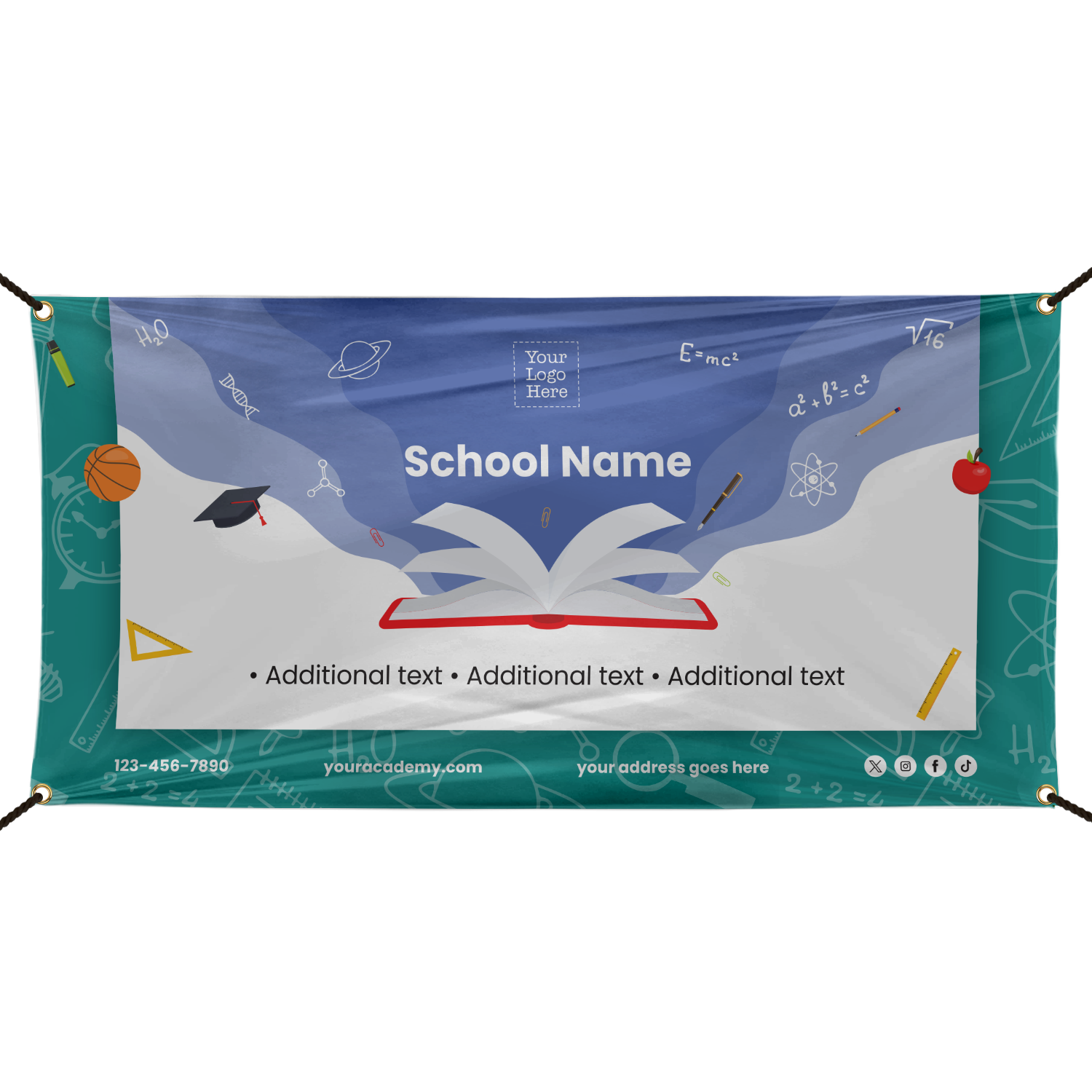 Custom Vinyl Banner: School Academy Education K12 - Add Your Text and Logo (B-3133) Learn More...