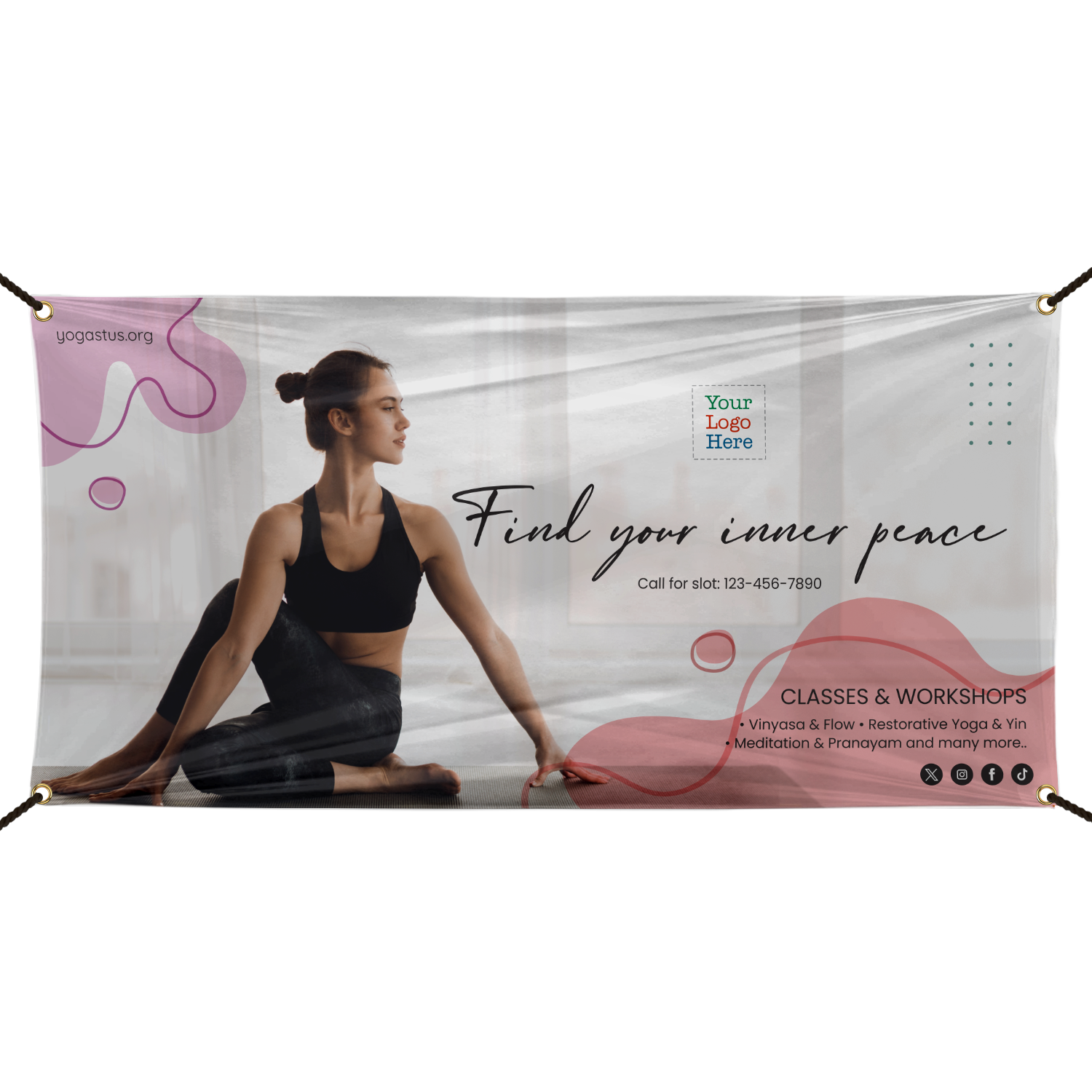 Custom Vinyl Banner: Yoga Classes Studio - Add Your Text and Logo B-3121 Learn More...