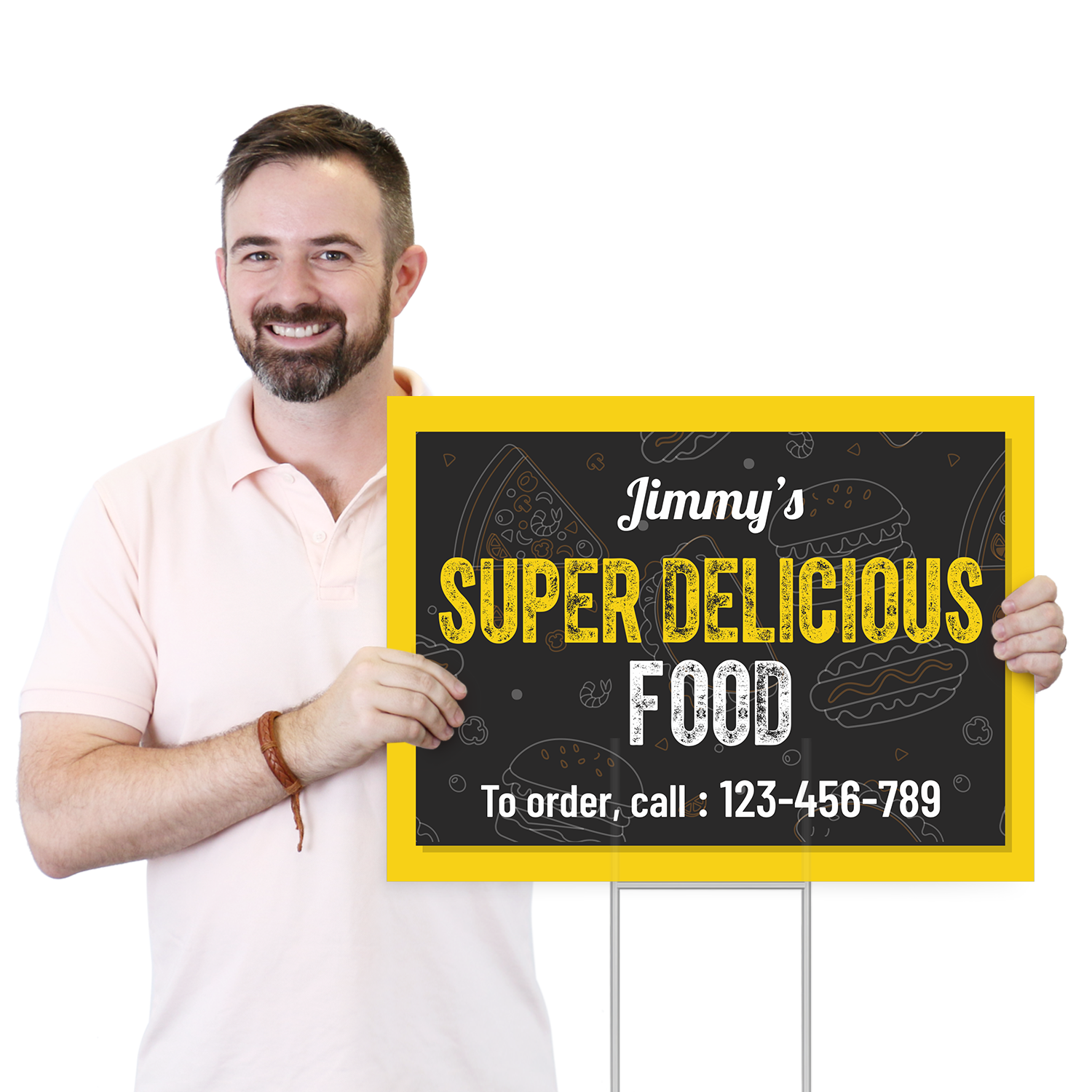 Restaurant Custom Yard Sign: Super Delicious Food - Add Your Restaurant Name & Contact Number K3-3002-H