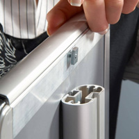 - Sturdy aluminum pedestal ensures the stand remains upright in public spaces.