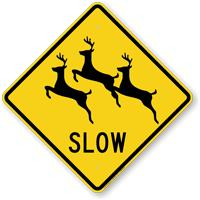 Slow down – Deer Crossing! Keep deer and humans safe, to preserve nature and prevent accidents. Give drivers plenty of warning, so they know to be on the lookout. Browse our selection of deer crossing, or other animal crossing signs below.