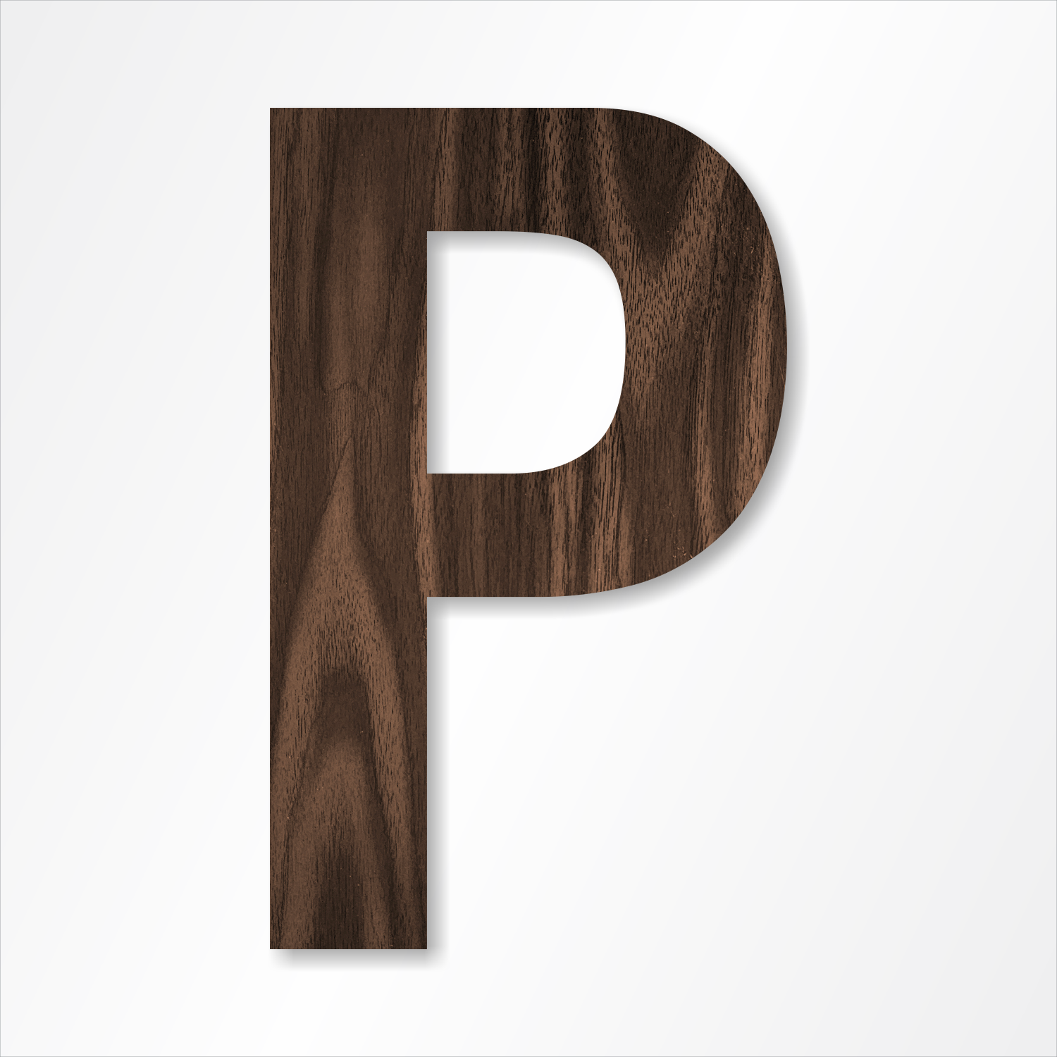 Die-Cut Upper Case Letter: Die-Cut 12 Inch Character Height, Dark Walnut, Upper Case - P (NL-CO-PR-12-DW-UC-P)