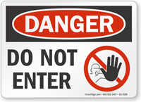 Do Not Enter Signs are not only for the roads. These signs also help you prohibit access to dangerous areas like confined spaces, chemical storage areas, electrical rooms, radiation areas, construction zones, and more. Do Not Enter Safety Signs protect untrained personnel from entering hazardous locations in your facility and reduce your liability in case of an accident. Using strict language for Do Not Enter Signs helps reinforce compliance in unsafe areas.