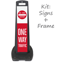 For additional weight and stability in windy conditions, you may add water, sand, or gravel in the ballast ports at the base of the sign holder. The ballast port has a capacity of 2.5 gallons, adding an extra 19-21 lbs of weight. These portable do not enter signs are perfect for parking lots and any other areas where temporary entry restrictions apply.