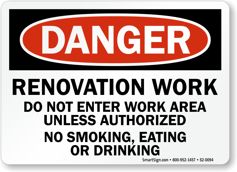 An OSHA Danger Sign makes sure unauthorized personnel do not enter, smoke, eat, or drink in the renovation zone.