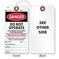 • • Each Do Not Operate Tag features reinforced eyelets for easy, reliable hanging. A reinforced eyelet makes secure hanging a snap.