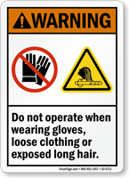 ANSI Warning Sign: Do Not Operate When Wearing Gloves, Loose Clothing Or Exposed Long Hair (S2-0712)