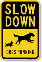 Common messages include “CAUTION: DOGS AT PLAY,” “SLOW DOWN: PETS AT PLAY,” and “PLEASE DRIVE SLOWLY WE LOVE OUR PETS.” Examples such as the Dog Crossing Symbol Sign or Dog and Horse Crossing Sign help protect pets in active neighborhoods.
