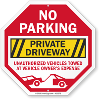 Private road signs are extremely useful as these tell people that the road or driveway is not meant for general public use, thereby implying that a violation can amount to trespassing on private property. These signs communicate your property rules and help prevent crowding, turn-arounds, and unauthorized parking on your property.