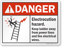 Ladder users can be electrocuted—if proper precautions are not followed. Use this ANSI Danger Sign to relay important safety message across.
