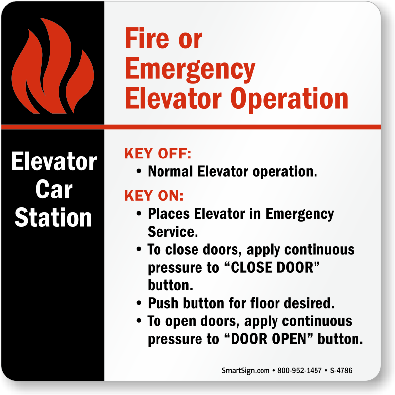 Teach users to quickly switch elevator from normal to emergency mode during a crisis by installing this bold high durability sign.