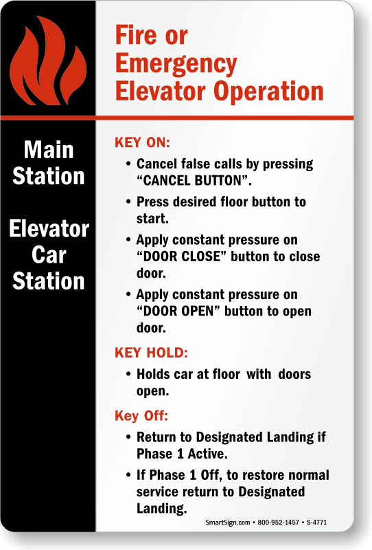 Elevator Fire Operation Sign