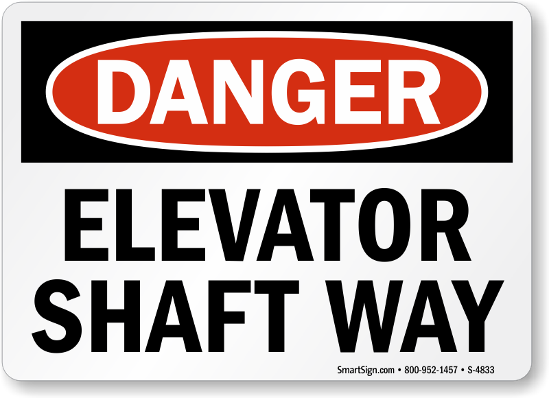Don’t let elevators be a source of injury. Use a "elevator shaft way" sign.