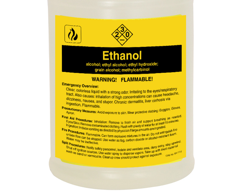 Ethanol Labels are specifically designed to offer hazard warnings on chemical containers. These labels ensure compliance with safety regulations - meet the OSHA Hazard Communication Standard, 29 CFR 1910.1200 (HCS) and reduce the risk of injuries. With clear and legible instructions, accompanied by universally recognized hazard symbols, these labels effectively communicate vital information about chemical safety.