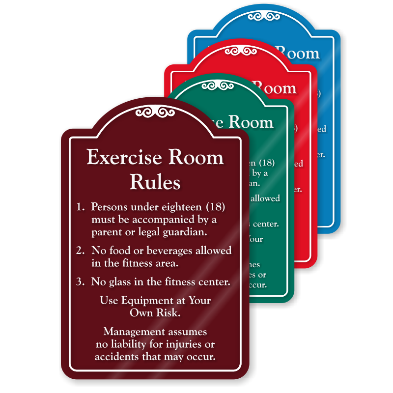 Signature ShowCaseâ„¢ Sign: Exercise Room Rules - Management Assumes No Liability For Injuries Or Accidents (SE-7055)