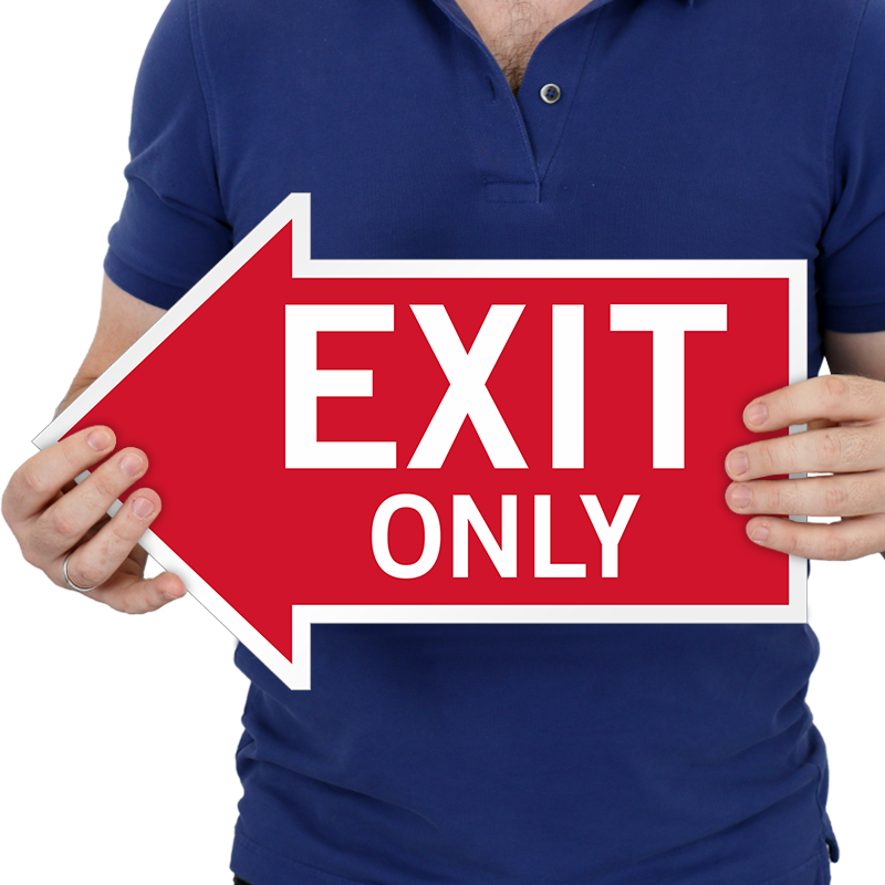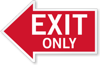 Use this die-cut Exit Only arrow sign directing left, to clearly mark exits for easy egress in case of emergency. This magnetic sign serves as best alternative to permanent sign.