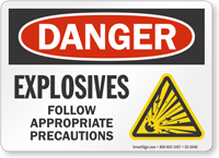 OSHA Danger Sign: Explosives, Follow Appropriate Precautions (S2-2648)