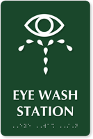 • • Most signs have eye wash graphic that breaks linguistic barriers and makes the sign easy-to-understand.