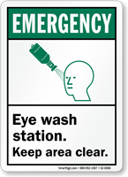 • • Most signs have eye wash graphic that breaks linguistic barriers and makes the sign easy-to-understand.