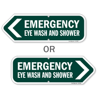 An eye wash sign should clearly identify the location of the station and include directional arrows to guide workers from a distance, and our emergency eye wash signs feature bold legends, the standard eye wash symbol, and high-contrast colors to ensure rapid identification when seconds matter in a chemical splash emergency.