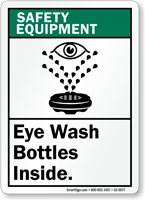 • • Most signs have eye wash graphic that breaks linguistic barriers and makes the sign easy-to-understand.