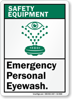 • • Most signs have eye wash graphic that breaks linguistic barriers and makes the sign easy-to-understand.