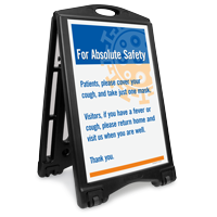 Face covering required signs should be used in all public spaces to help prevent the spread of the virus, including parking lots, pavements, take outs and, drive-ins You can use BigBoss A-frame signs, Stand-up Floor Signs, and the hard-to-miss SignPosts to urge your customers to wear a mask as they wait in their cars.