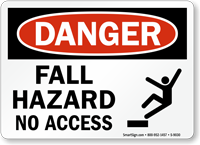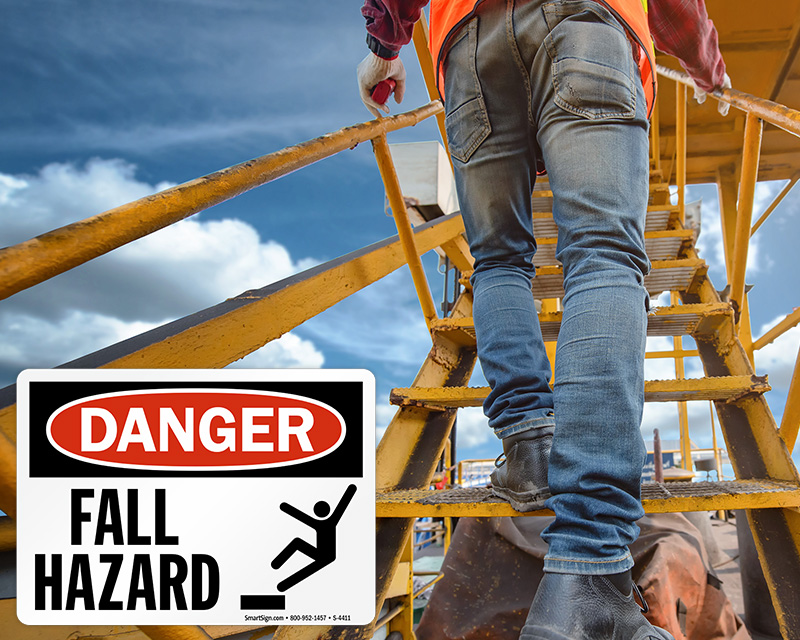 We carry fall hazard warning signs for construction sites, rooftops, loading docks, elevated platforms, scaffolding, ladders, and any work area where falls from height are a risk. Signs are available in Danger and Warning headers in aluminum, plastic, and adhesive vinyl - with bilingual English/Spanish options for diverse construction and industrial workforces.