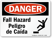 Yes. We offer bilingual English/Spanish fall hazard warning signs for construction sites, industrial platforms, and elevated work areas with diverse multilingual workforces. Bilingual fall hazard signs ensure that Spanish-speaking workers and contractors receive the same critical fall risk information as English-speaking colleagues - an important element of any OSHA-compliant fall protection program.