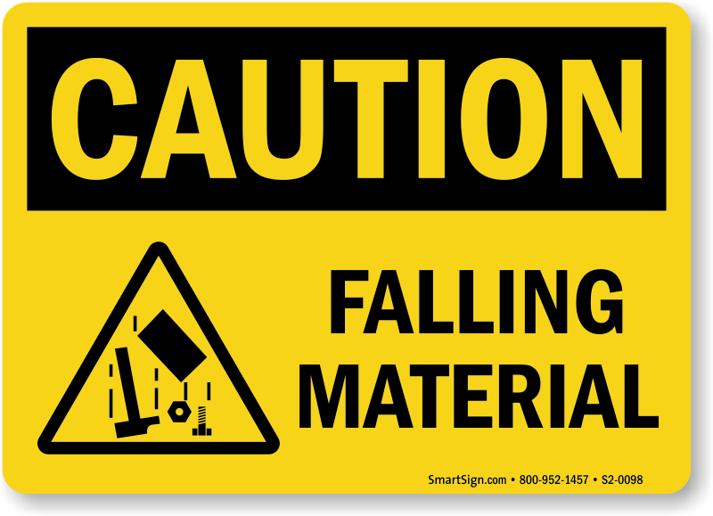 Falling material can cause serious head injuries. This OSHA Caution Sign indicates workers to wear head protection and be watchful of work overhead.
