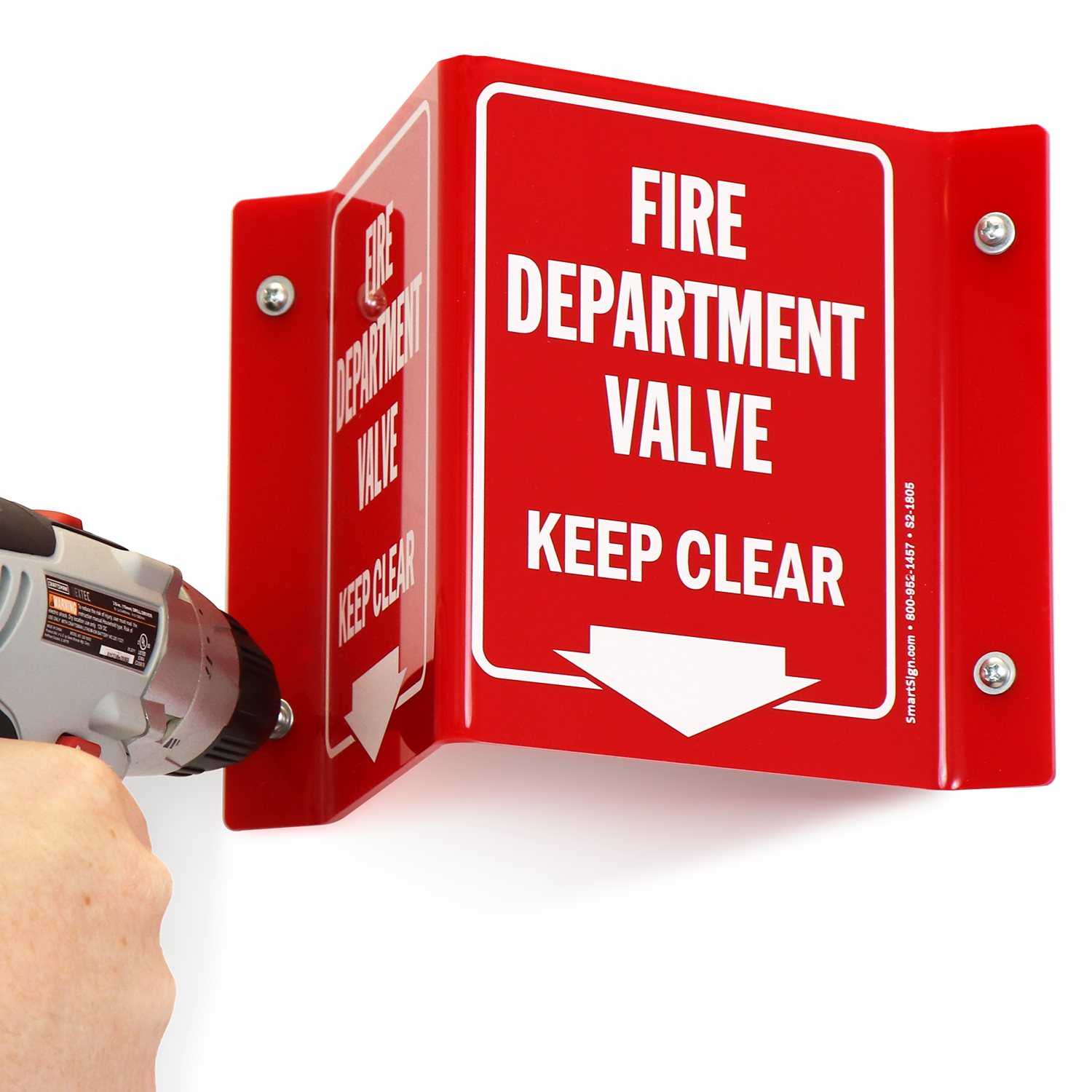 Fire Department Projecting V-Sign: Fire Department Valve - Keep Clear (With Down Arrow) (S2-1805)