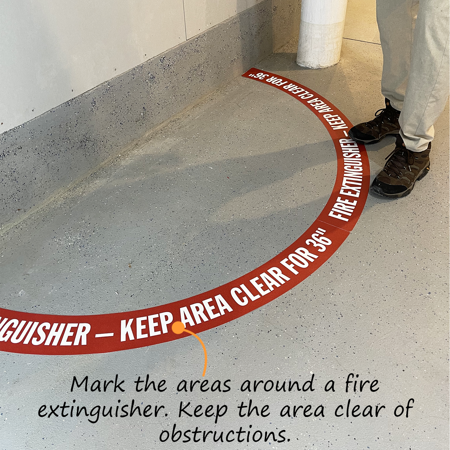 This 2-part adhesive floor sign is a great way to not only specify how much the clear zone is but also demarcate it.