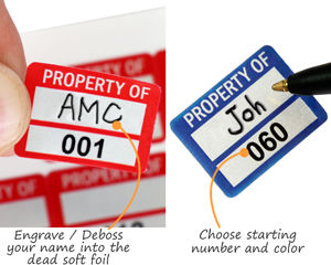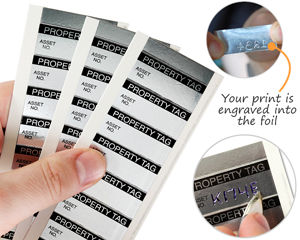 - • Engraveable Foil Asset Labels. Mark your asset labels with a permanent message. The soft surface lets you mark foil asset labels with a pencil or pen, but your message lasts long after the ink washes away.