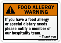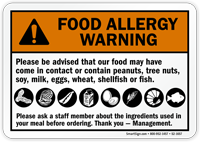 Don’t risk someone’s life because your facility didn’t disclose potential food allergy triggers. Clearly communicate by displaying these possible lifesaving Food Allergy Warning Signs and avoid the risk.