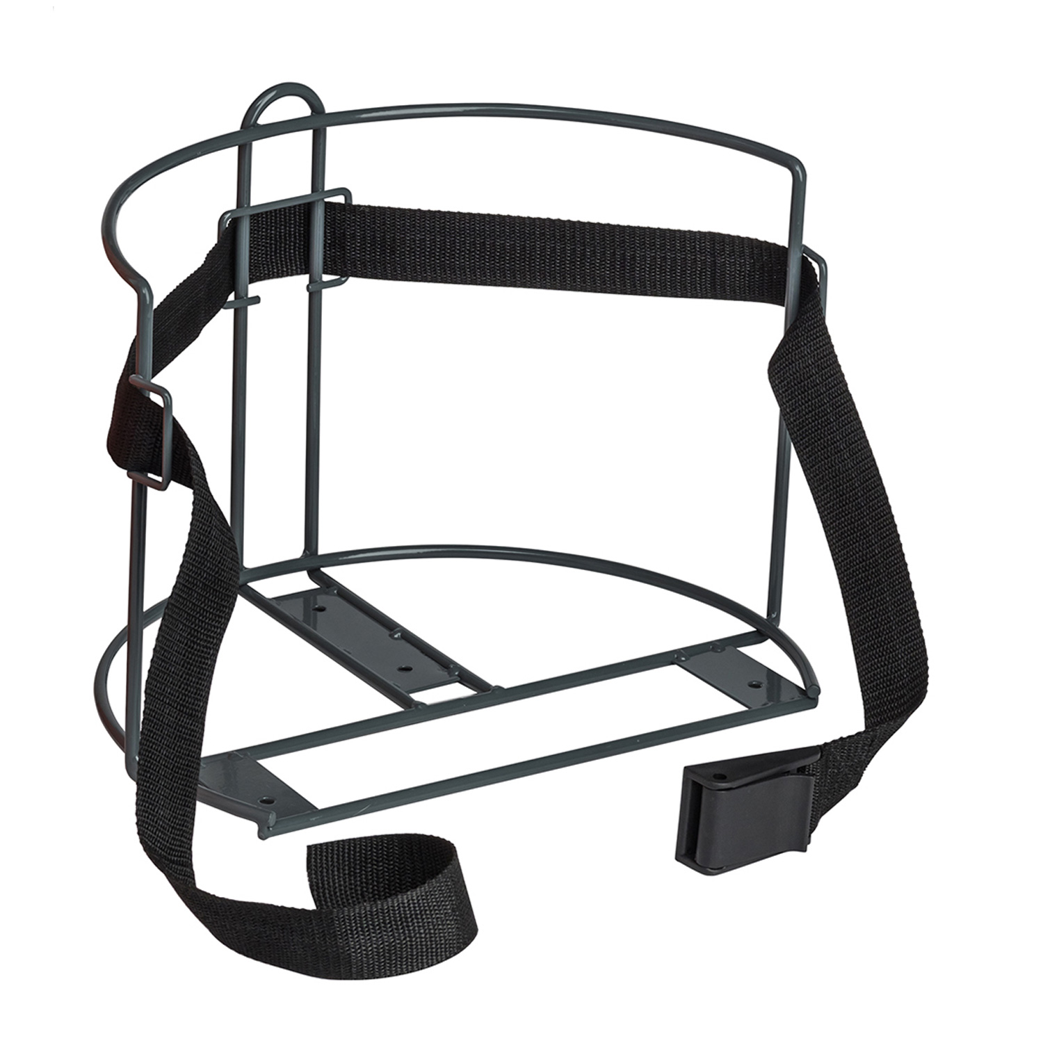 5 Gallon Water Cooler Carrier Rack (Also holds 2 gal. Jugs). Mounts to shelf or wall. Strong nylon strap with buckle.