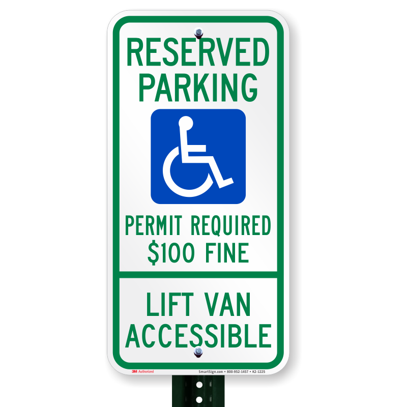 - Accessible parking signs feature 3M's reflective films and inks on durable, rustproof aluminum.