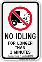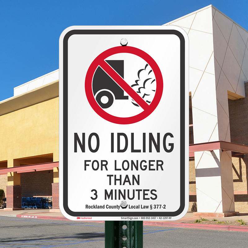 No idling for more than 3 minutes rule is adopted by Rockland, New York under the state law. Install this No Idling Sign and make rules clear to everyone.