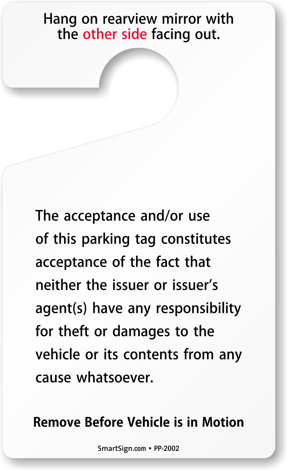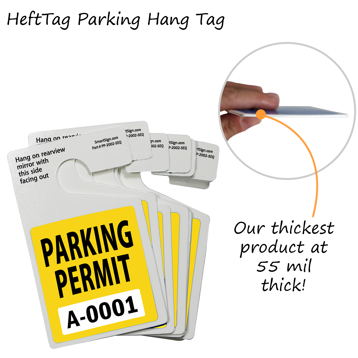 Two-sided parking permits are in-stock and ship fast. Heavy-duty tag outlasts all others. Our durable ToughTagâ„¢ material protects your embedded text and graphics under a layer of lamination. While our HeftTagâ„¢ material provides a more affordable, but durable option!
